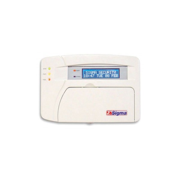 Πληκτρολόγιο αφής με φωτιζόμενα πλήκτρα και LCD οθόνη μπλέ χρώματος με λευκά γράμματα.