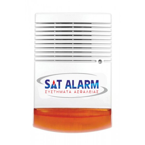 Αυτόνομη, σειρήνα με LED Flash κόκκινου χρώματος.Ακουστική ισχύς 122dB στο 1μ., χωρίς μεταλλικό καπάκι.